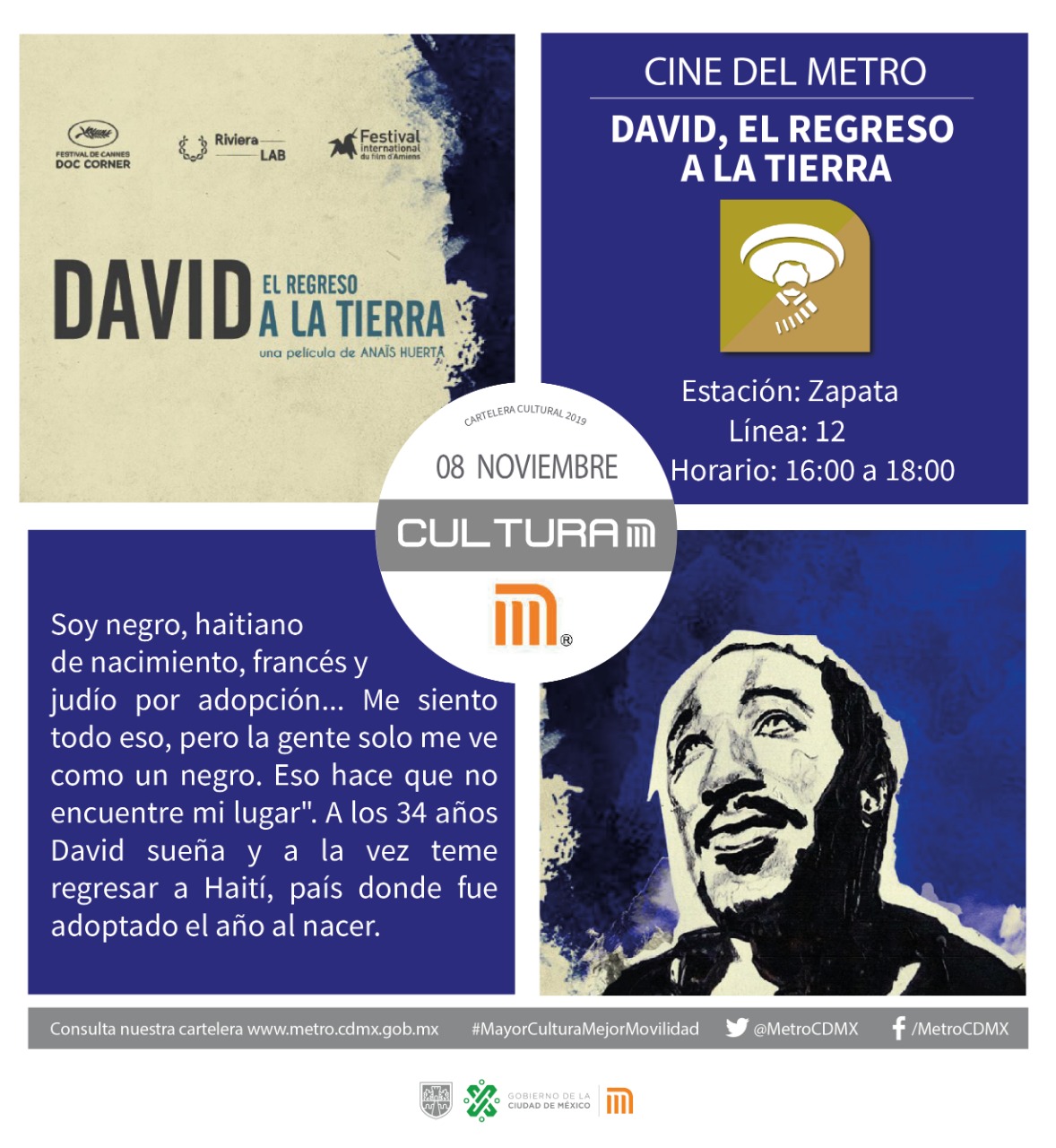La película "David, El Regreso a la Tierra" se proyectará de forma gratuita en el cine del Metro, ubicado en la estación Zapata de la Línea 12 en punto de las 16:00 horas.