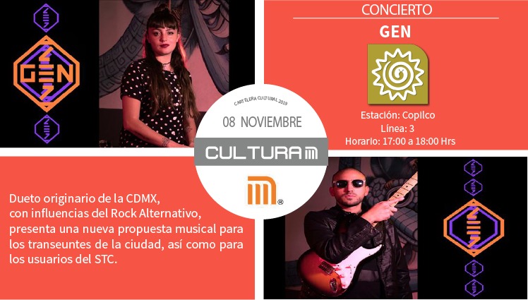 Más tarde, a las 17:00 horas, en la estación Copilco de la Línea 3, el duo de rock alternativo, GEN, tocará para los usuarios.