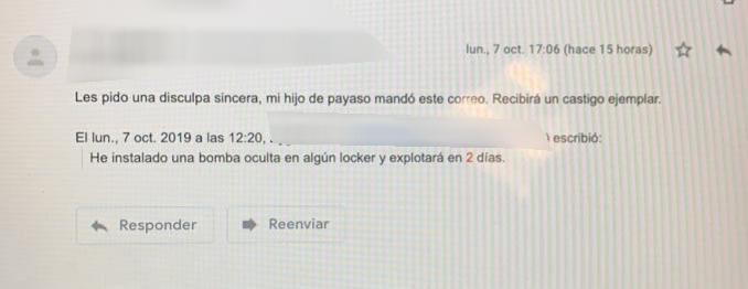 Sin embargo posteriormente "los elementos fueron notificados de que al parecer un familiar del estudiante informó que se trataba de una broma y que el involucrado sería castigado por sus padres".