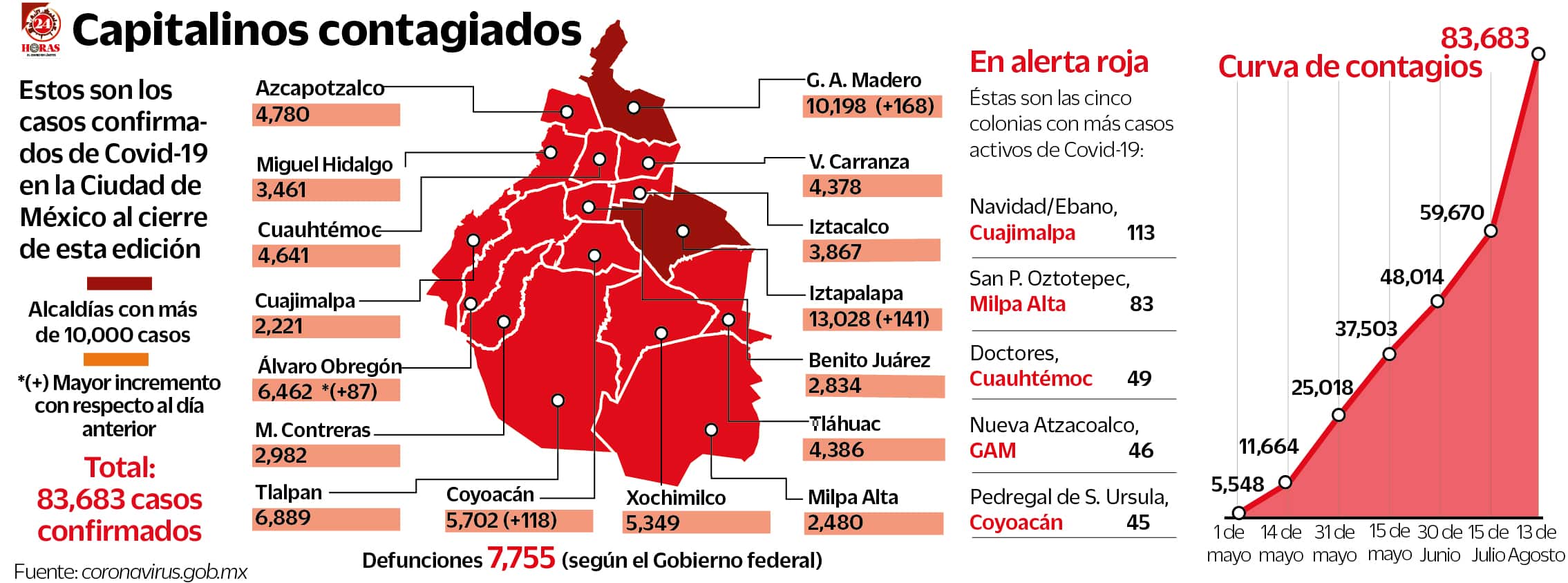 San José Insurgentes, en Benito Juárez; La Concepción, en Magdalena Contreras; Juárez y Centro, en Cuauhtémoc, y Ajusco, en Coyoacán, fueron las colonias que registraron mayor uso de cubrebocas esta semana.