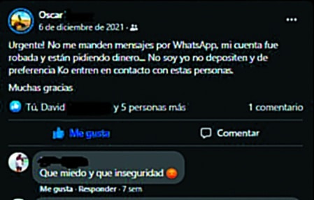Señaló que han detectado casos de extorsión donde piden dinero al usuario para recuperar esta herramienta, lo cual nunca pasa; otra situación que se presenta son casos de estafas en las que se hace llegar un mensaje de texto a familiares o amigos.