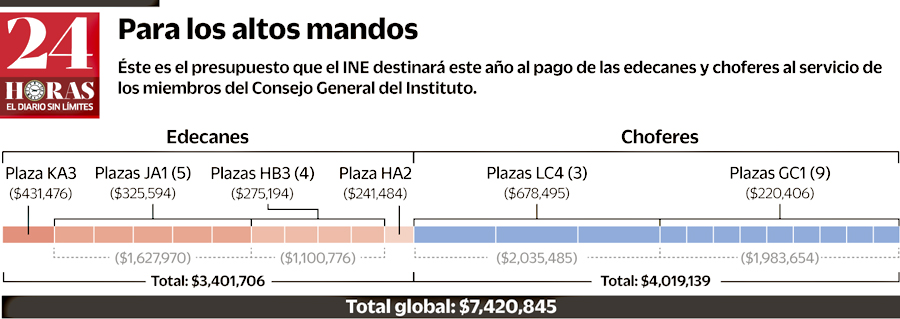 El Instituto Nacional Electoral, en una nota enviada a 24 HORAS a través de la Dirección de Comunicación Social, señaló que la nómina incluye edecanes y choferes desde el otrora Instituto Federal Electoral (IFE), por lo cual no lo consideran un gasto irregular.