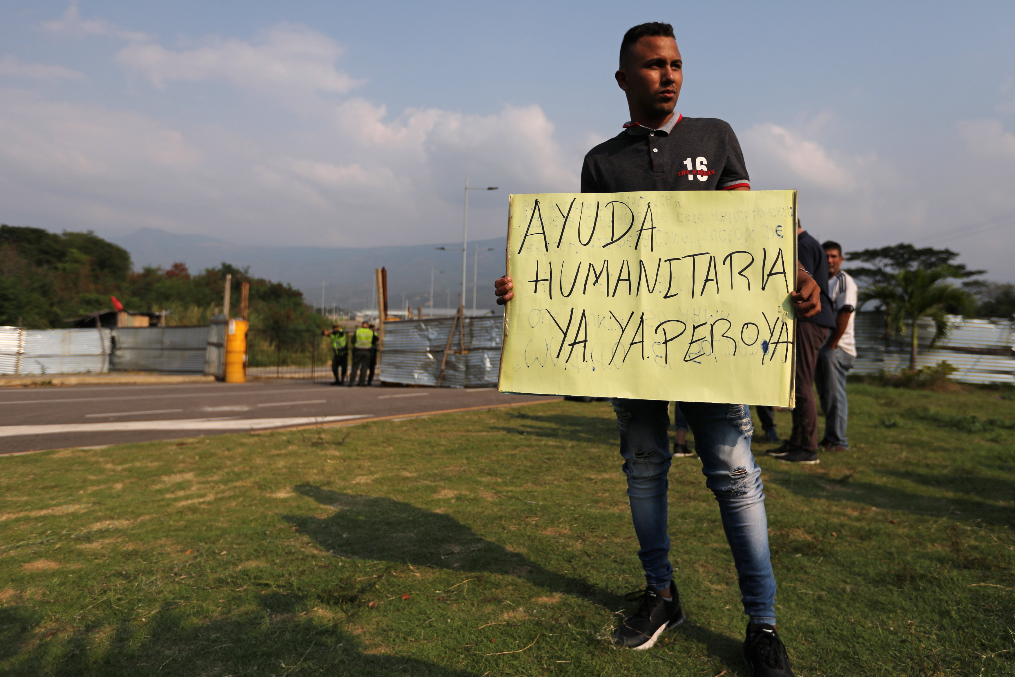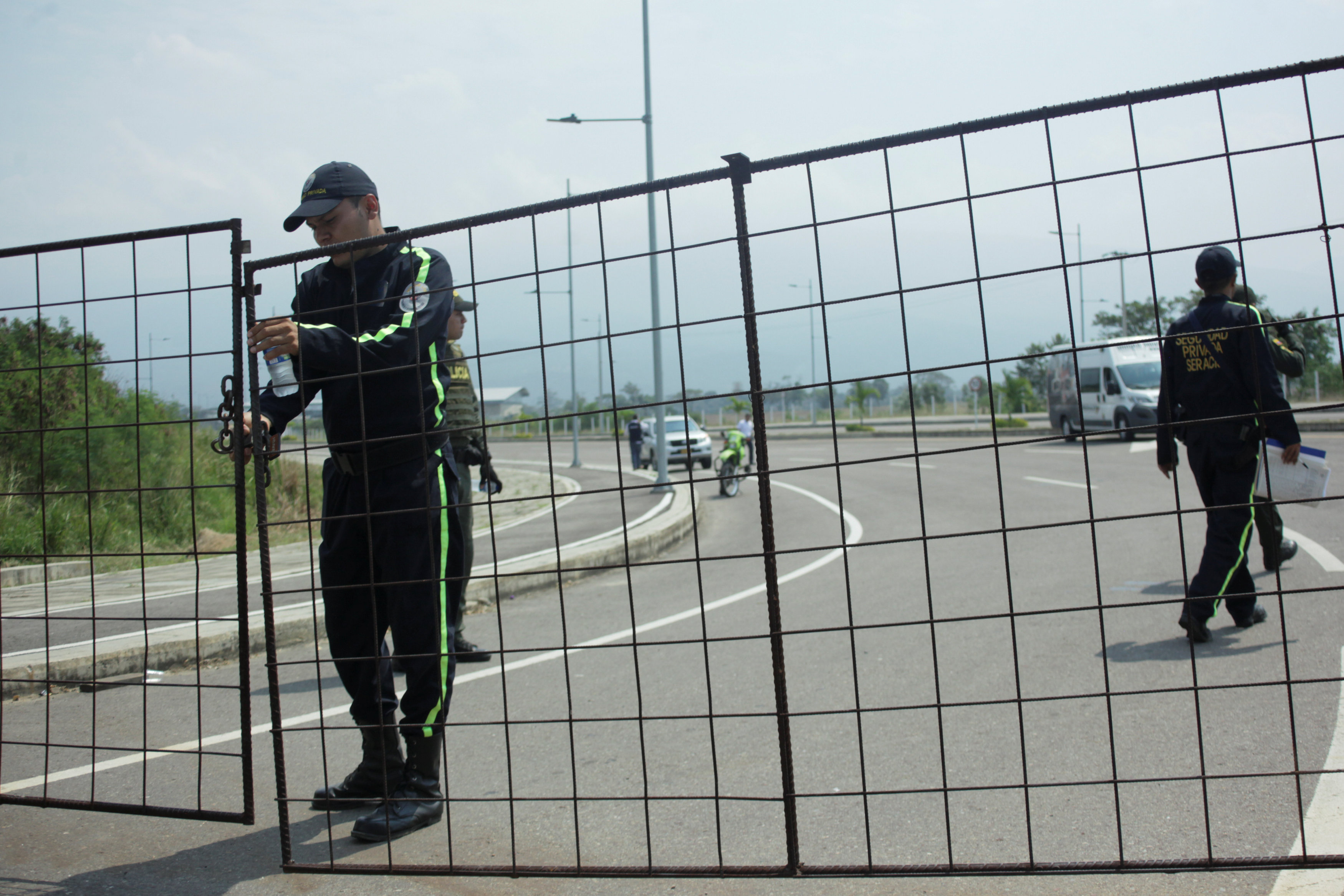 Mirando a través de una cerca metálica que limita el ingreso al posible sitio en el que se recopilaría la ayuda humanitaria que varios países enviarán a Venezuela, Yesica Leonett busca información sobre cómo podrán acceder a las donaciones los cuatro hijos que tuvo que dejar en su pueblo.