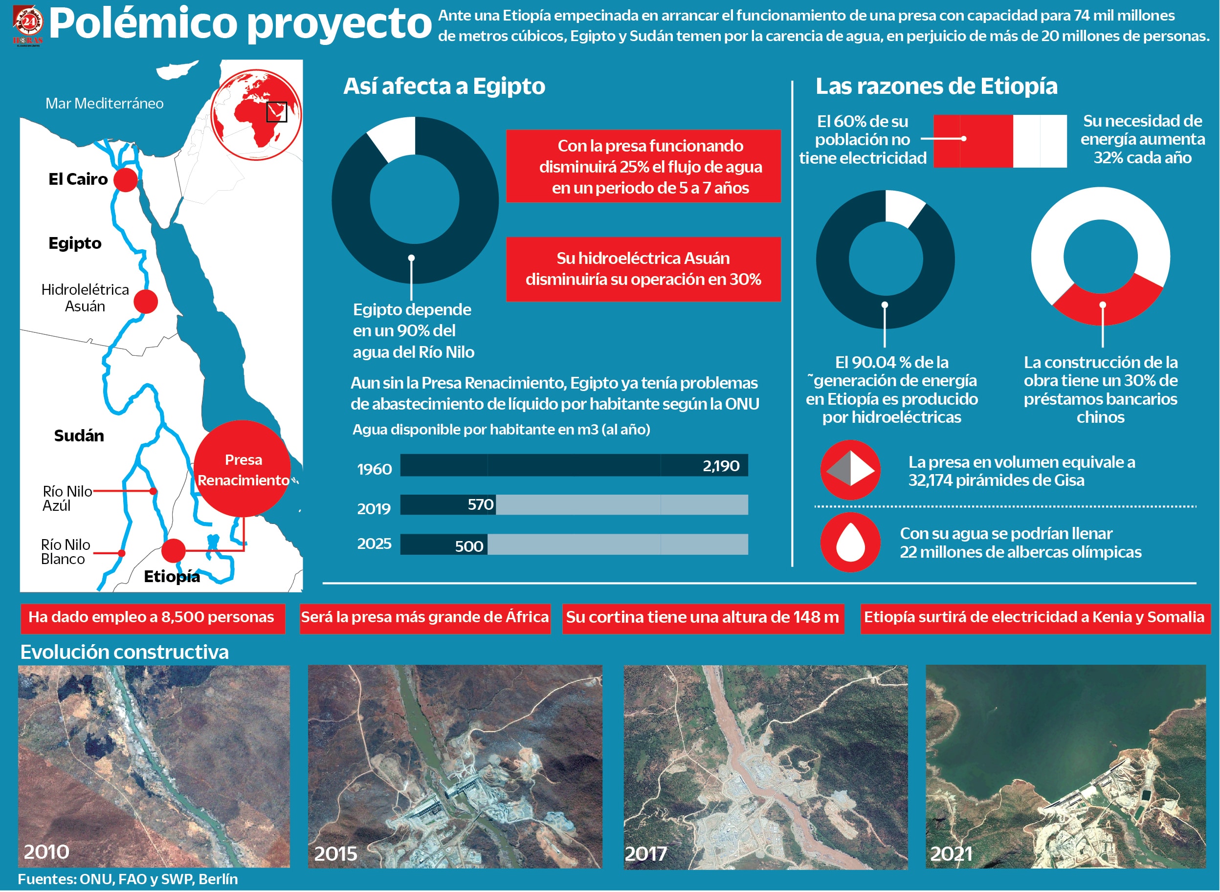 “Cuando ya tienes consideraciones que implican el uso de un recurso que es vital para Egipto y Sudán, como es el río Nilo, y que ahora también quiere utilizar Etiopía, podemos entender que hay un escenario de animosidad entre las partes”, expresó Hernández.
