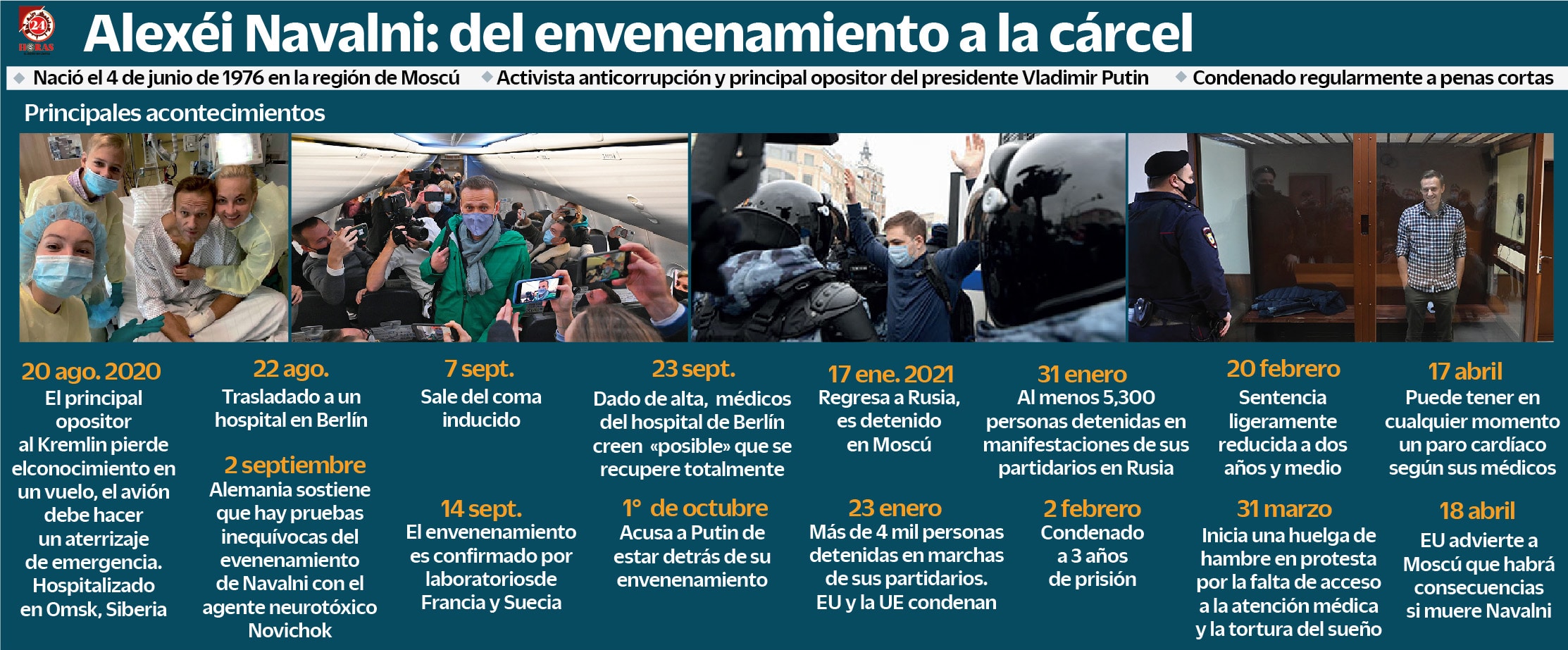 El encarcelamiento, posterior huelga de hambre y agravamiento de la salud del opositor al Gobierno ruso, Alexéi Navalni, le está ganando enemigos al presidente Vladimir Putin.