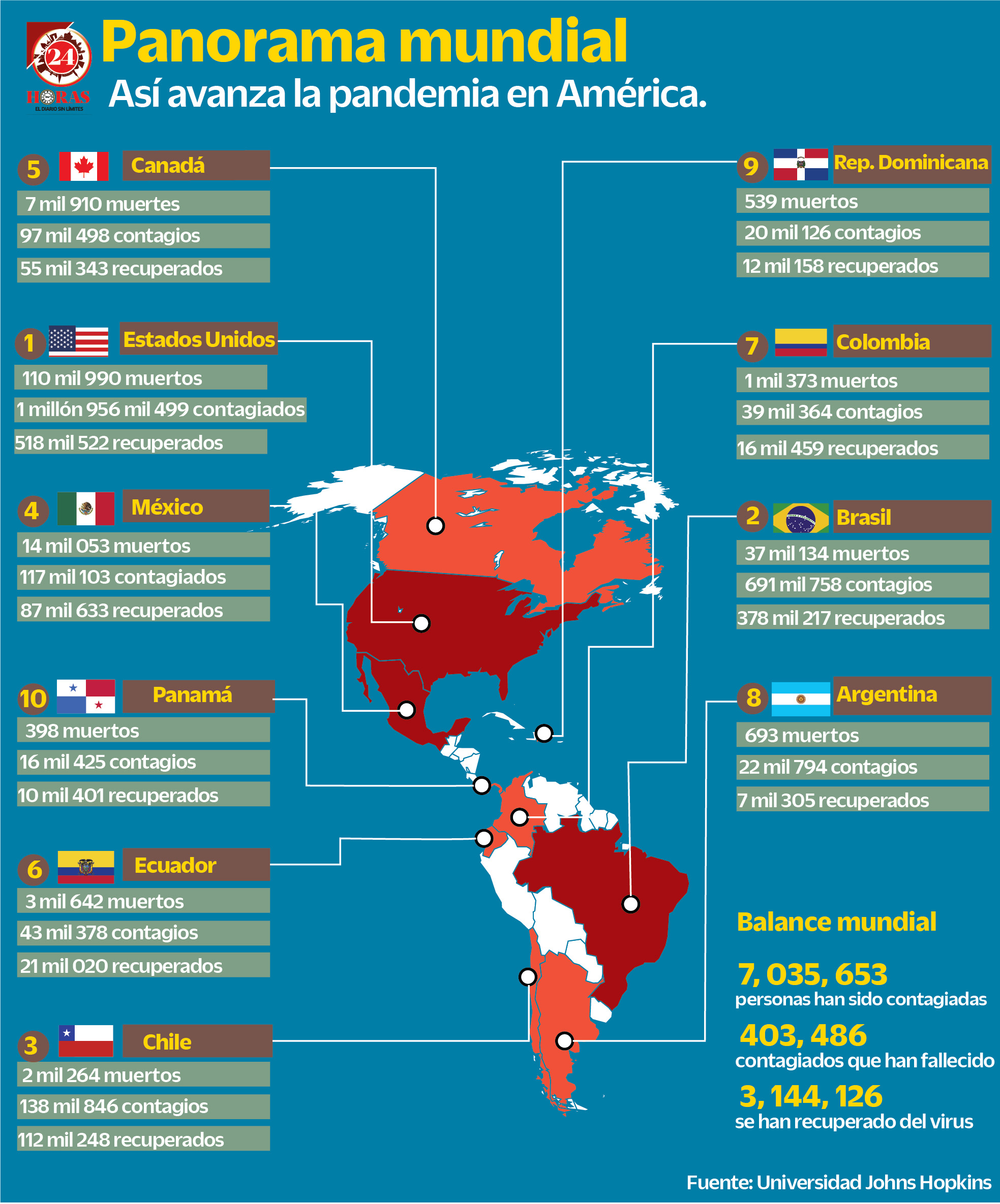 Hasta ayer, el Covid-19 había cobrado la vida de más de 403 mil personas y ha infectado al menos a 7 millones desde que apareció en China el pasado diciembre.