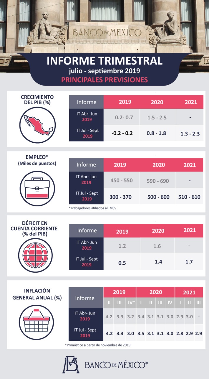 Banxico bajó también su pronóstico para 2020, de un intervalo de entre 1.5 y 2.5% a uno de entre 0.8 y 1.8%.