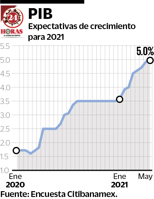 Diversos analistas del sector financiero, encuestados por Citibanamex, modificaron sus expectativas de crecimiento económico del país al alza, ya que ahora anticipan un repunte ligeramente mayor para este año, al pasar su previsión de 4.9% a 5.0%.