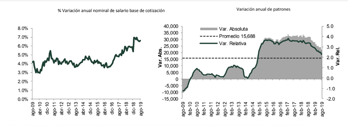 El IMSS informó que al 31 de agosto de 2019, el salario base de cotización de trabajadores asegurados al IMSS alcanzó un monto de $379.7.