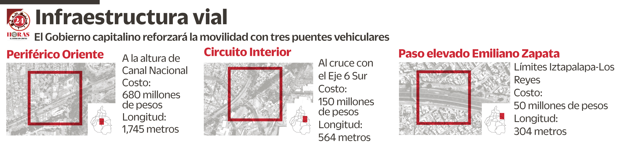 Esteva Medina detalló que en el caso del puente Emiliano Zapata, la empresa contratada es CICSA (Consorcio de Ingenieros Civiles), mientras que en el caso de Eje 6 y de Canal Nacional se falló en favor de IDINSA.