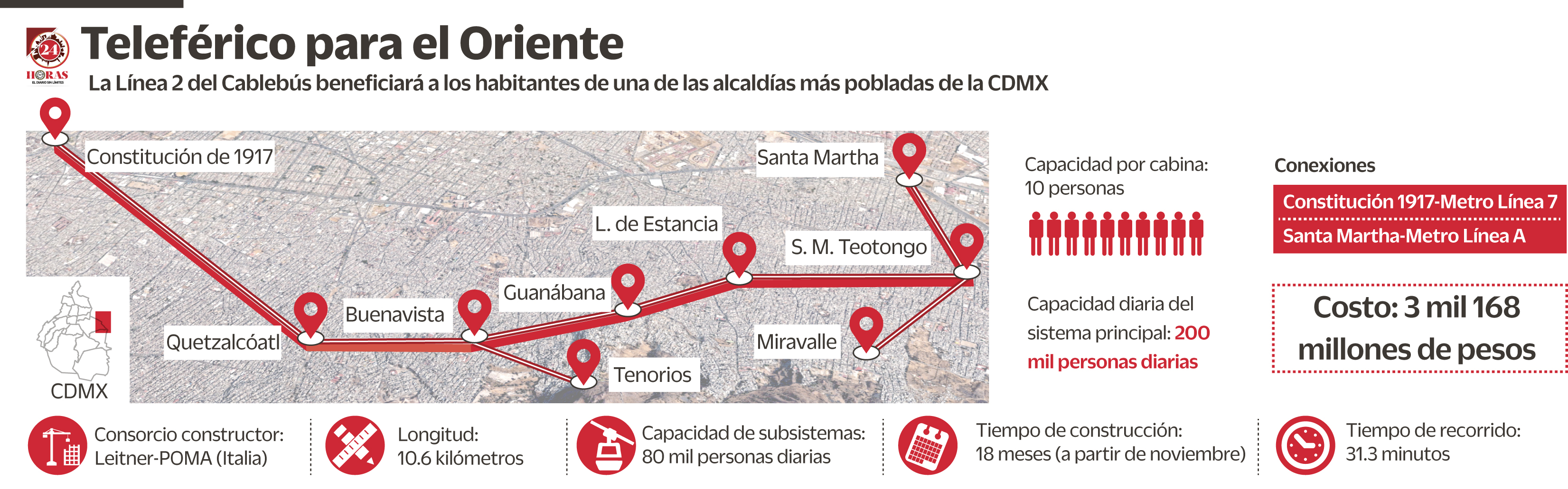 El Gobierno de la Ciudad de México anunció que en noviembre arrancará la construcción de la segunda línea del sistema Cablebús, la cual beneficiará a la alcaldía Iztapalapa y correrá desde el Metro Constitución de 1917 al Metro Santa Martha, con un costo de más de tres mil millones de pesos.