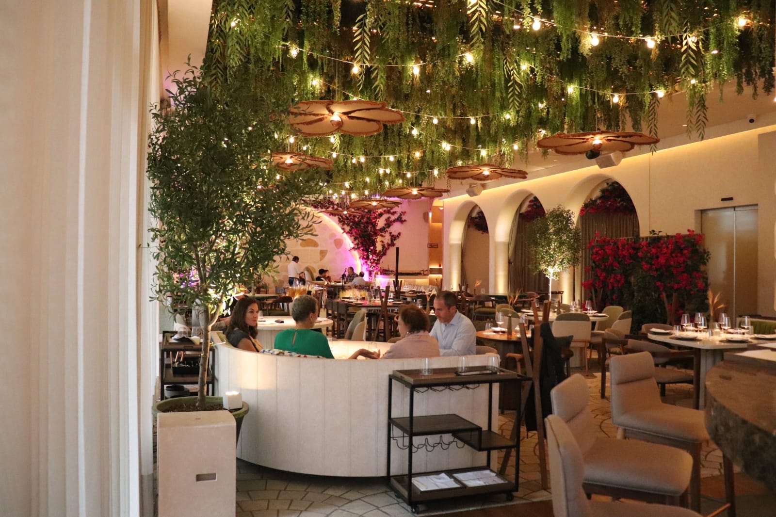 Tal es el caso de un restaurante griego Mentor donde los enamorados disfrutarán de un cóctel especial y bajo una luz tenue, rodeados de plantas y flores colgantes.