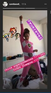 La actriz Camila Sodi publicó en su historia de Instagram una fotografía disfrazada de Kimberly, la Power Ranger rosa.