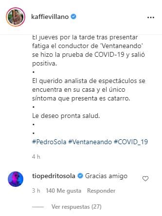 El comunicador Alex Kaffie dio a conocer este hecho por medio de su cuenta de Instagram y luego la cuenta oficial de Pedrito Sola confirmó el hecho.